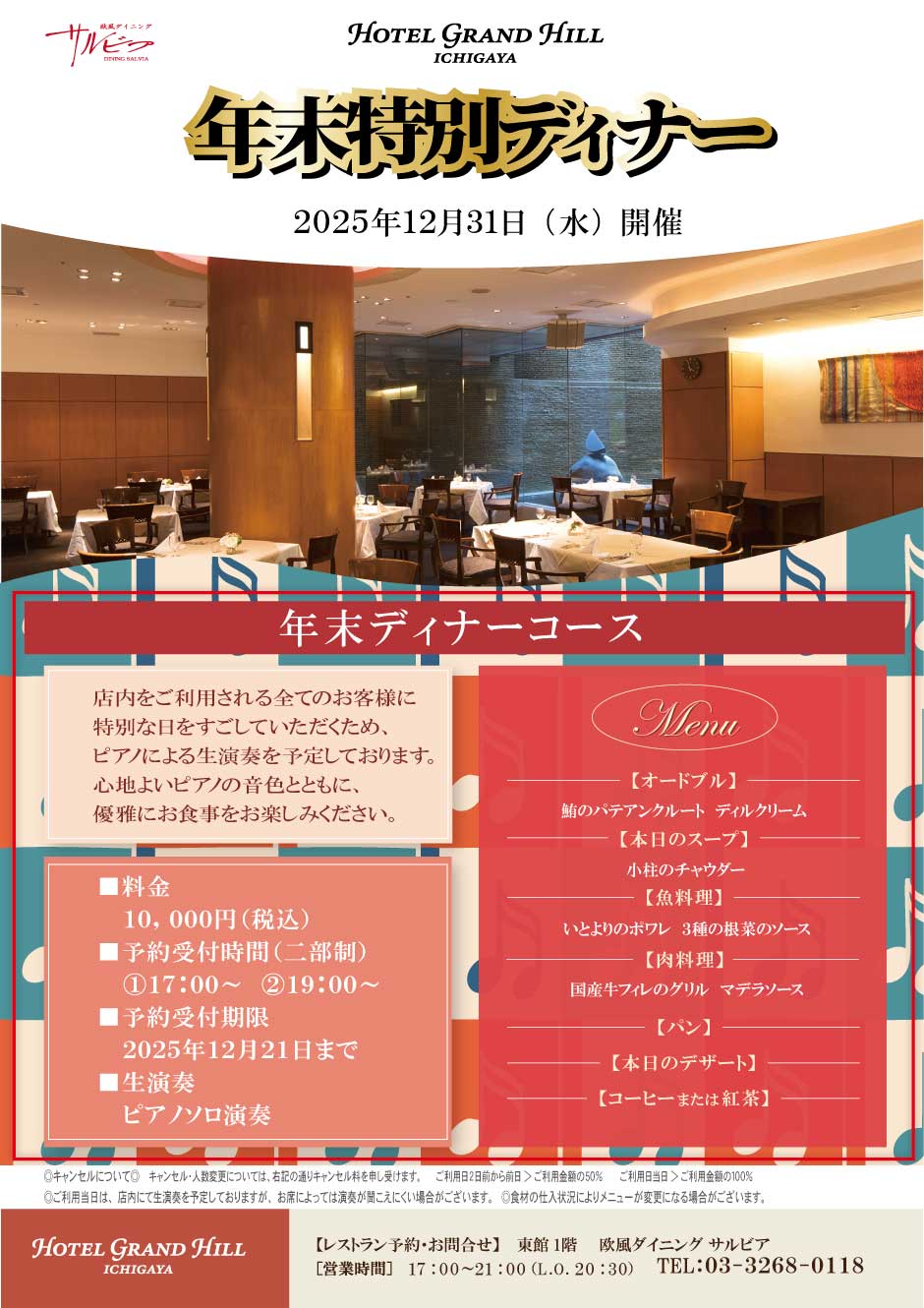 欧風ダイニングサルビア TEL03-3268-0118(直通)