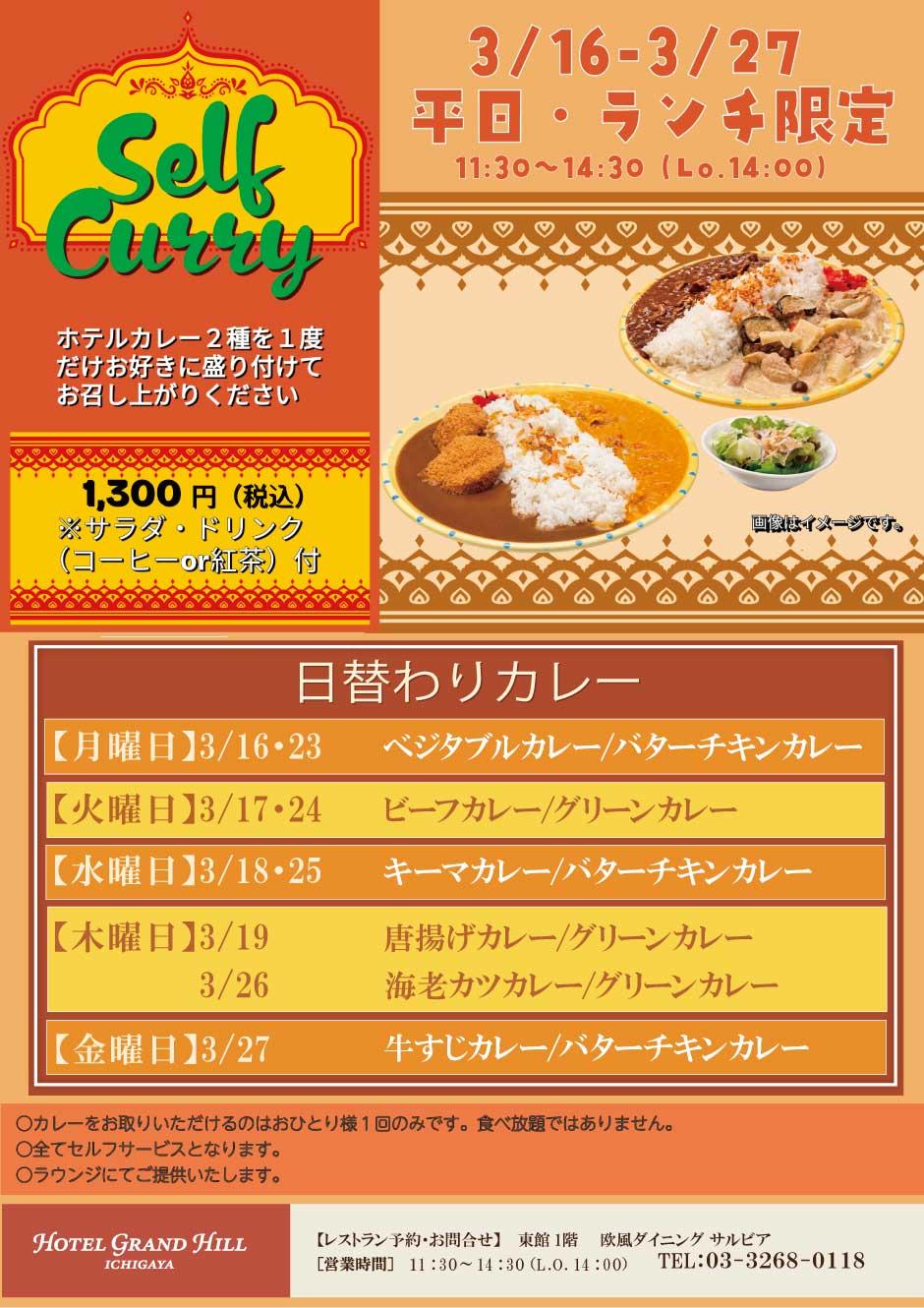【月曜日】 3/16・3/23 ベジタブルカレー / バターチキンカレー